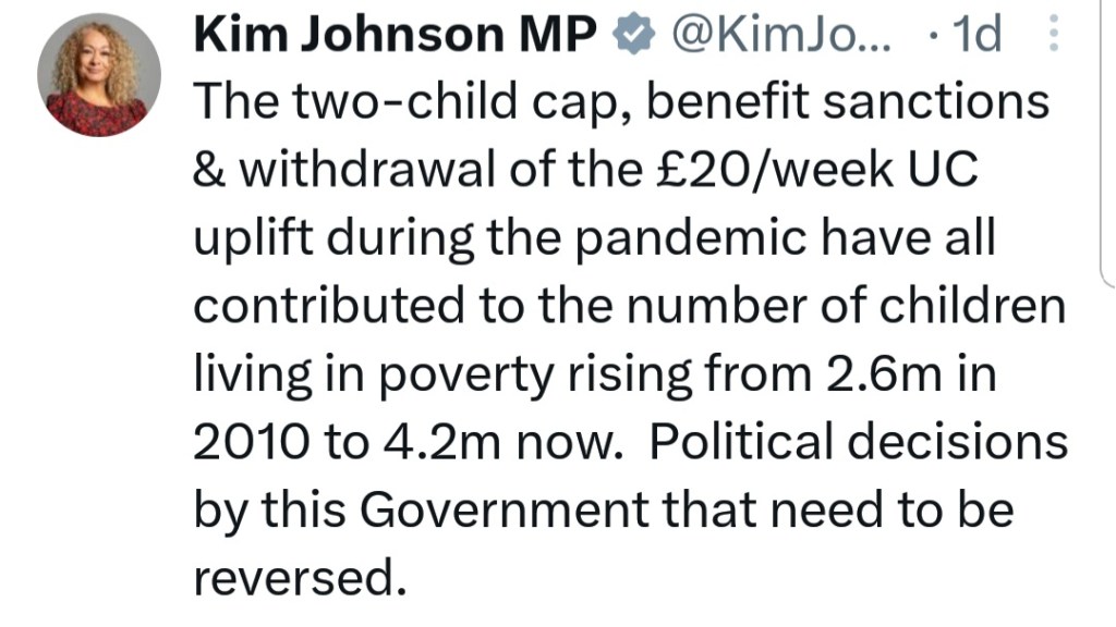 The other caveat is that this metric fell by 20% in the previous 7 year period so it has merely returned to its starting point. As is so often the case, we are served bad news but not the good. When did you hear about the 20% fall in child poverty “under the Tories”?